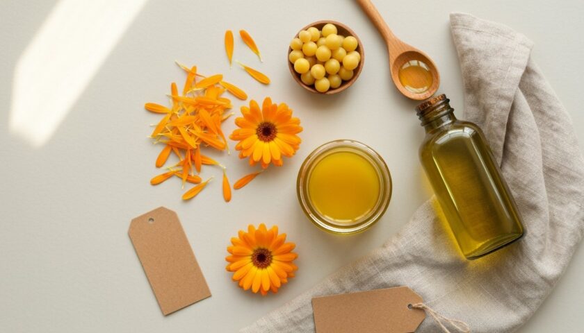 Ringelblumensalbe könnte als eine traditionell hergestellte Hautpflege verstanden werden, die Auszüge aus den Blüten der Ringelblume (Calendula officinalis) in einer